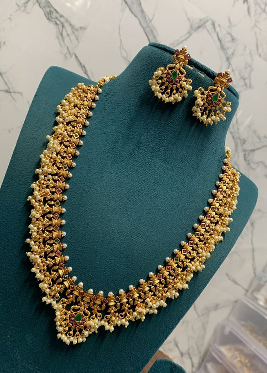 Exquisite, Trending Kempu Guttapushalu Long or Short Necklace Set with Earrings