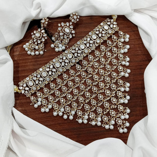 Grand Bridal GJ Polish Choker Necklace Set With Earrings -Premium Quality