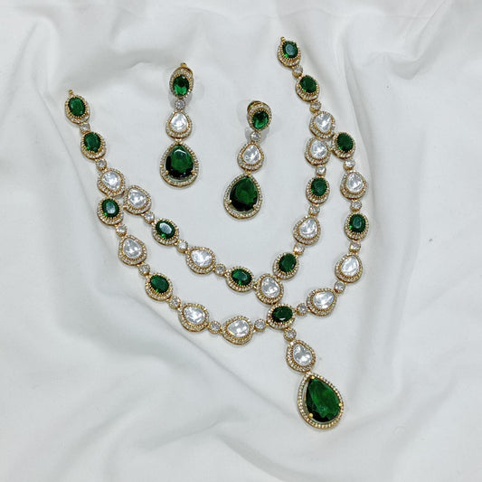 Exquisite Victorian Finish Moissanite Stone Layered Necklace With Earrings