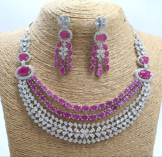 Beautiful American Diamond Necklace With Stud Earrings