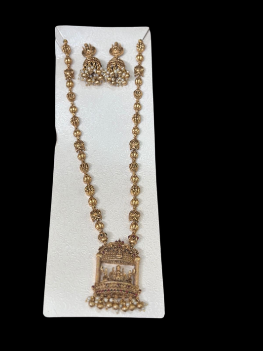 Simply Classic Matte Haram - Temple Jewelry Long Necklace Set with Earrings