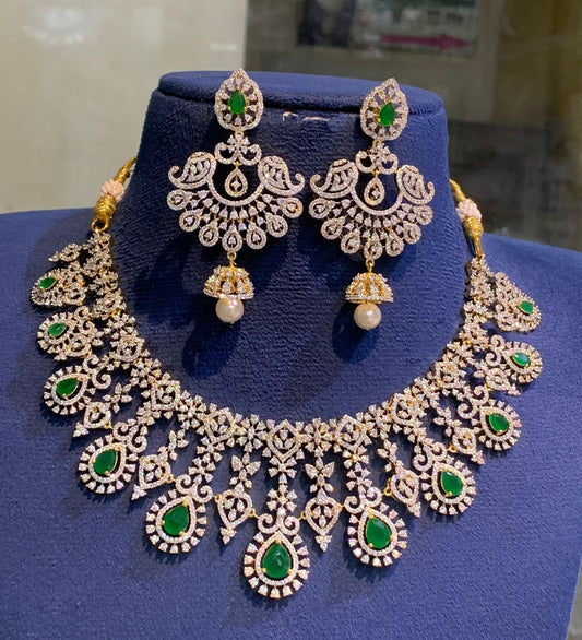 Stylish and Trendy Cz Stone GJ Polish Necklace Set With Earrings