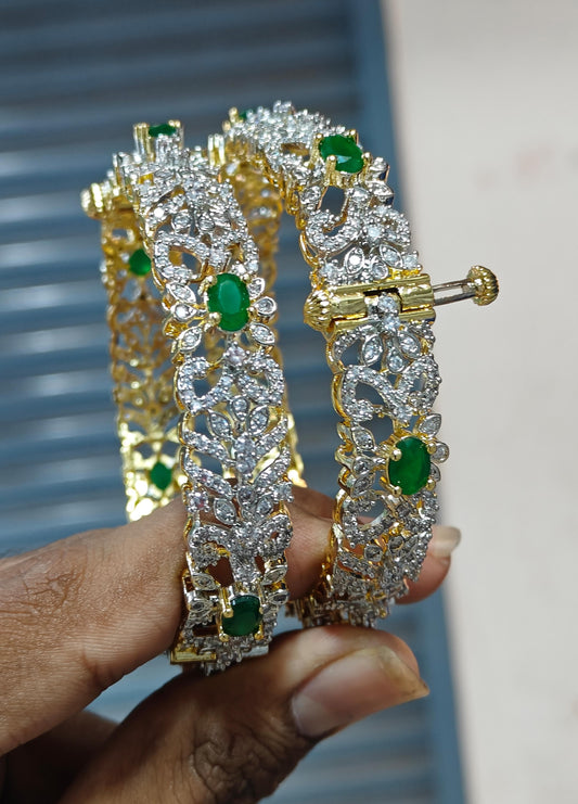 Classy and Stylish Bridal CZ White Stone Openable Kada Bangles -1 pair -GJ Polish