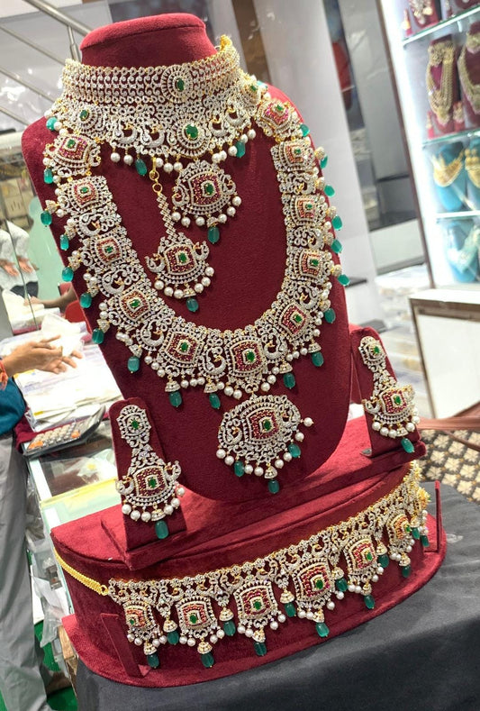 Exclusive Premium Quality CZ stone Full Bridal Set - Green GJ Polish