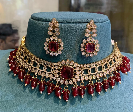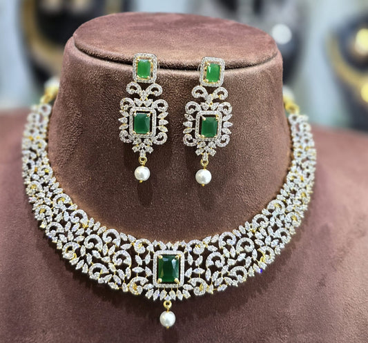 Trendy And Stylish GJ Polish CZ Stone Choker Necklace Set With Earrings