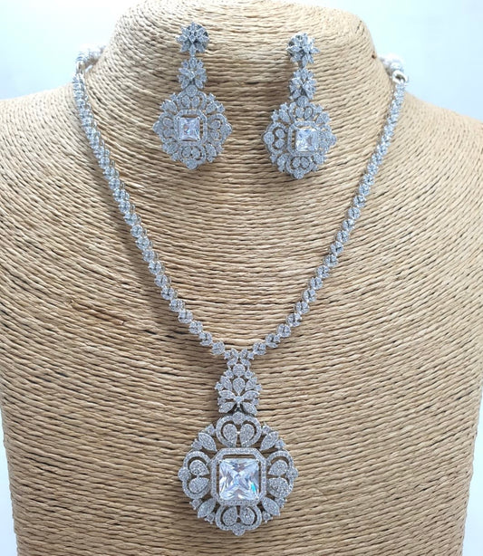 Trendy Minimalist AAA Cz Stone Necklace With Earrings - Premium Silver Polish
