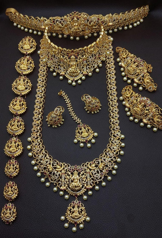 Premium quality Temple Jewelry CZ Stone Bridal Set Haram Necklace Set with Earrings Lakshmi Design