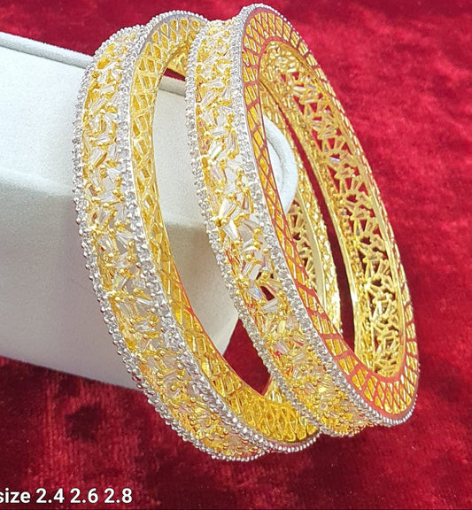 Premium GJ Polish CZ Stone Bridal Bangles set of 2-Party Wear