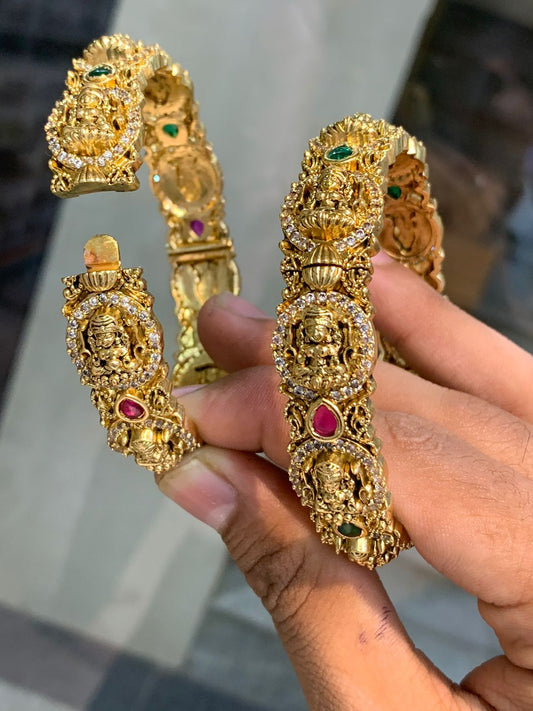 Beautiful Antique Matte Openable Bangles Temple Jewelry Lakshmi Bangles -set of 2