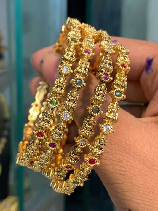 Trendy And Classy Premium Antique Finish CZ Stone Bangles-Lakshmi Motif-Set Of 2