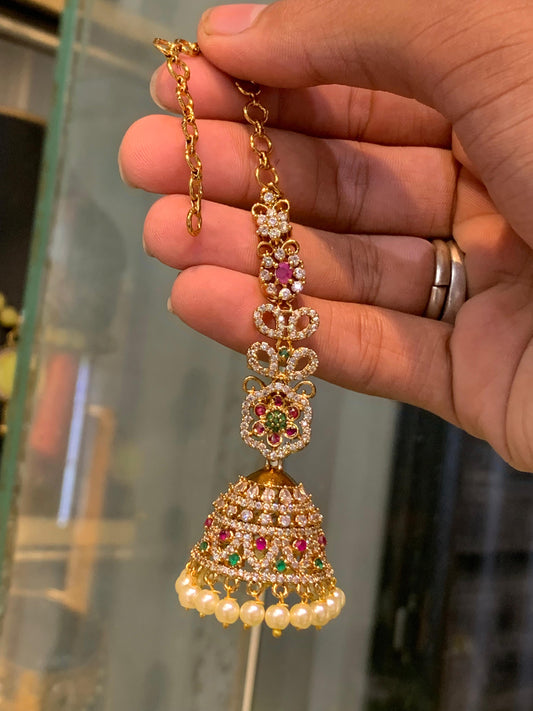 Premium Matte CZ Stone Jhumka Earrings with Earchains