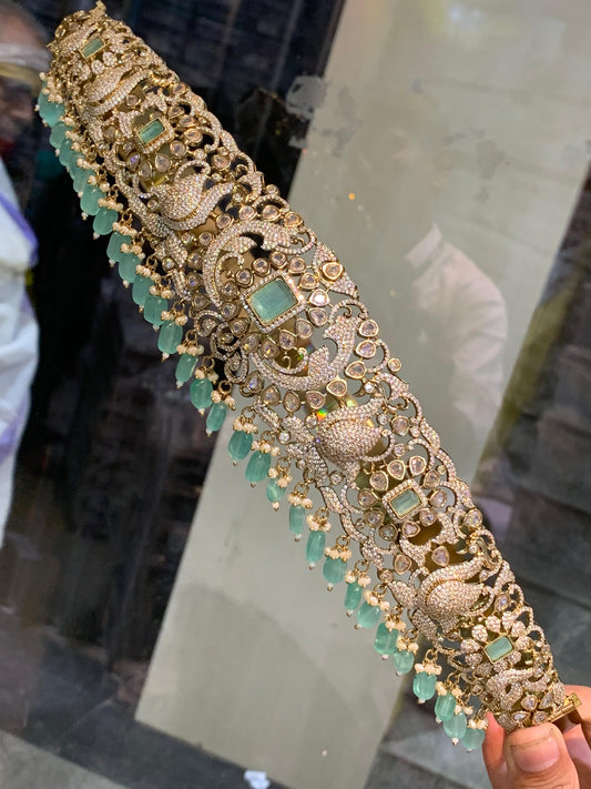 Classy Victorian Finish AD Stone Swan Motif Bridal Hipbelt