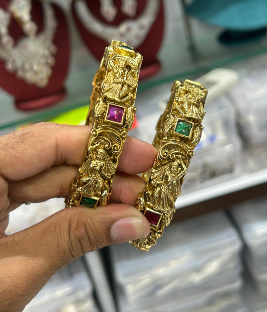 Beautiful Bridal Antique Finish Temple Jewelry Bangles - Multicolor