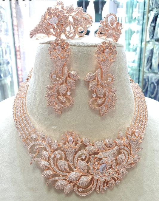 Elegant Bridal Choker Necklace Set with Earrings, Bracelet and Ring