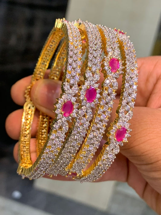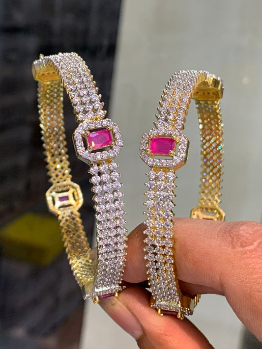 Beautiful Cz Stone Broad Bangles - GJ Finish Bangles -set of 2