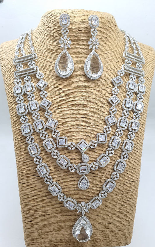Premium Quality 3 Layer AD Stone Necklace Set with Earrings