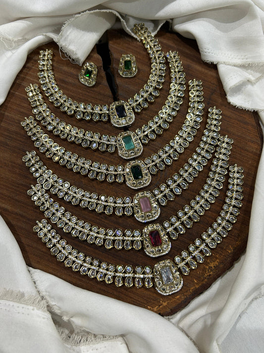 Elegant Premium Polki AD Stone Necklace Set With Earrings - 1 Set
