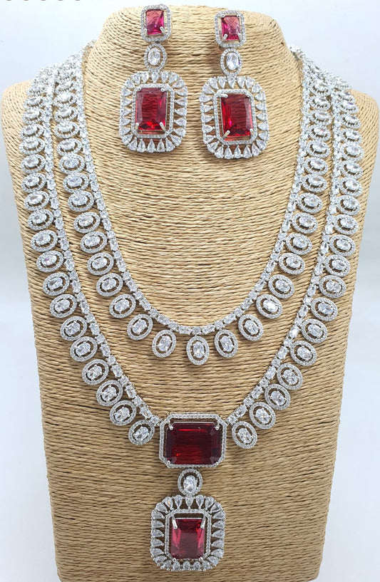 Trendy Design in American Diamond stone Matte Finish Jewelry- Necklace Set with Earrings