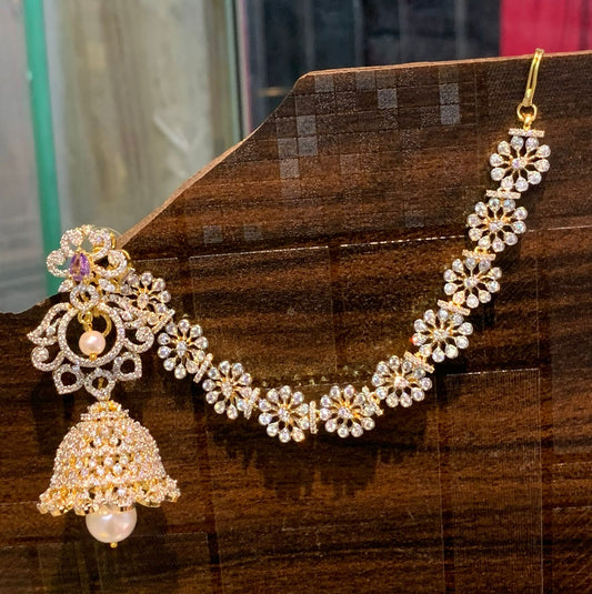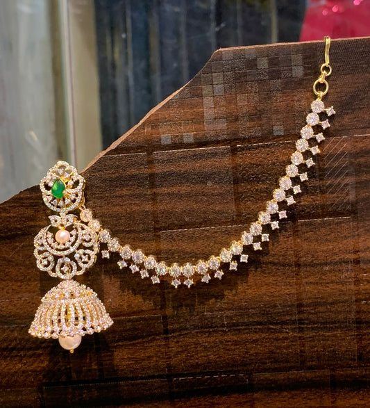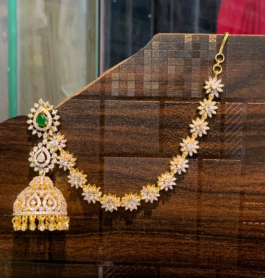 Elegant Premium GJ Polish CZ Stone Jhumka Earrings WIth Earchains - 1 Pair