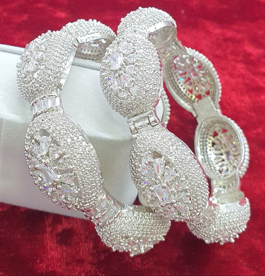 Elegant Premium Party Wear Silver Finish CZ Stone Bangles - Set Of 2
