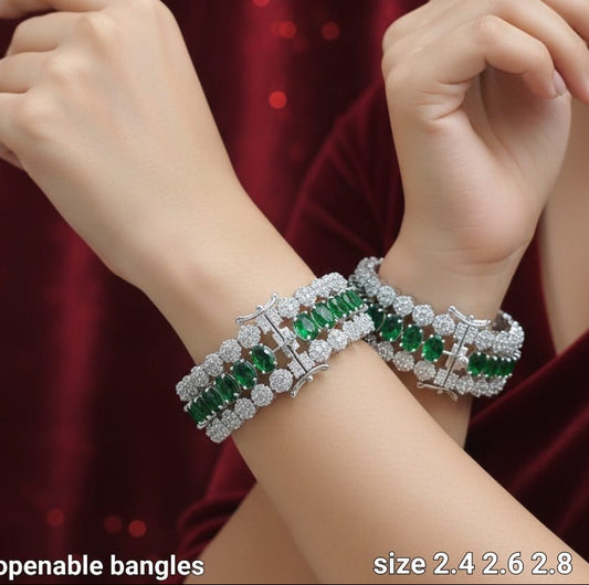 Elegant Silver Finish CZ Stone Openable Kada Broad Bangles - Set Of 2 - Premium Quality