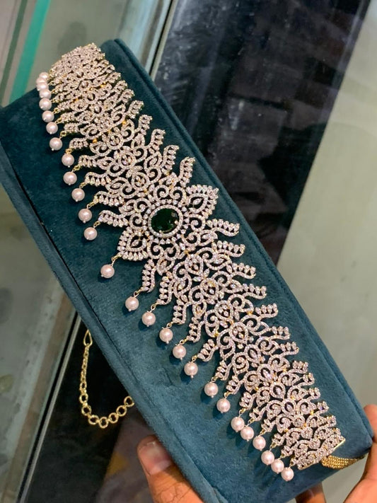 Fashionable Stone Hipchain - Premium Silver Polish AD Jewelry