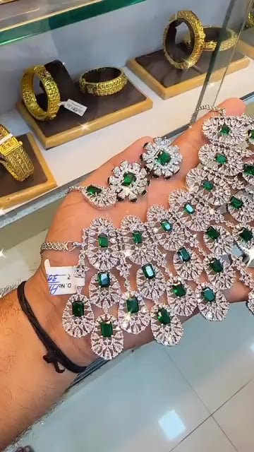 Latest Premium Matte Finish Emerald Green Necklace Set With Earrings