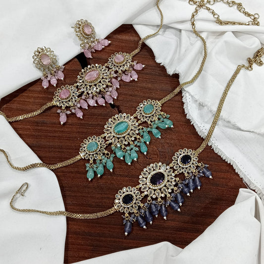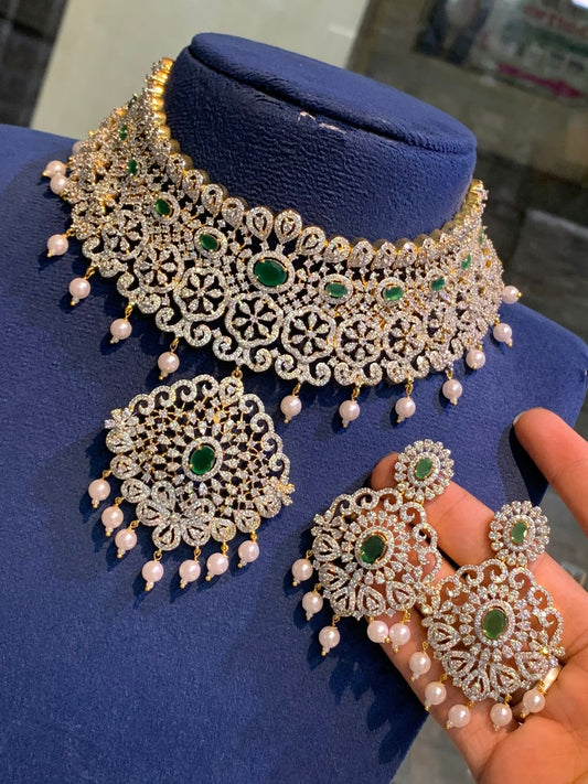 Premium Victorian Polish CZ Stone Mini Choker Necklace Set With Earrings
