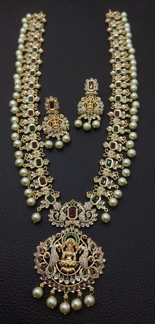 Designer Matte Finish Haram Long Necklace Combo Set with Earrings and Tikka