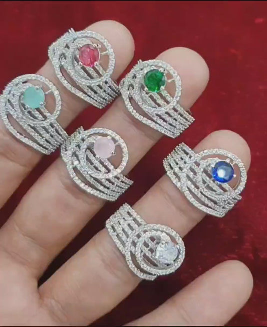 Partywear Adjustable Cocktail Rings Designer Premium Quality Jewelry- Silver Finish