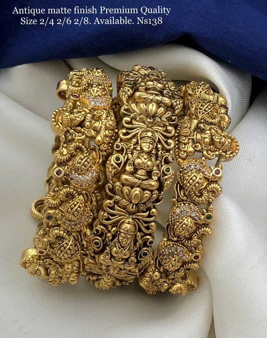 DesignerWear Antique Matte Finish Bridal Lakshmi Bangles set of 3, Party Wear- Temple Jewelry