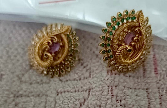 Premium Matte Finish Peacock Guttapusalu Earrings