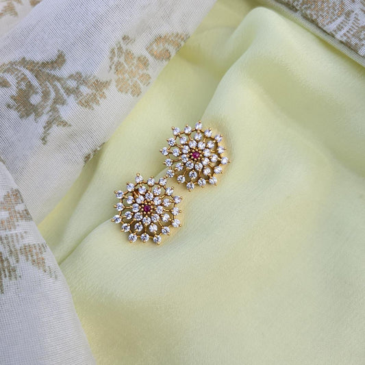Premium Matte Diamond Replica AD Stone-Stud Earrings-1 Pair
