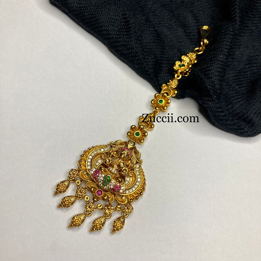 Exquisite Antique Matte Temple jewelry Maang Tikkas - Premium Lakshmi Nethichuti