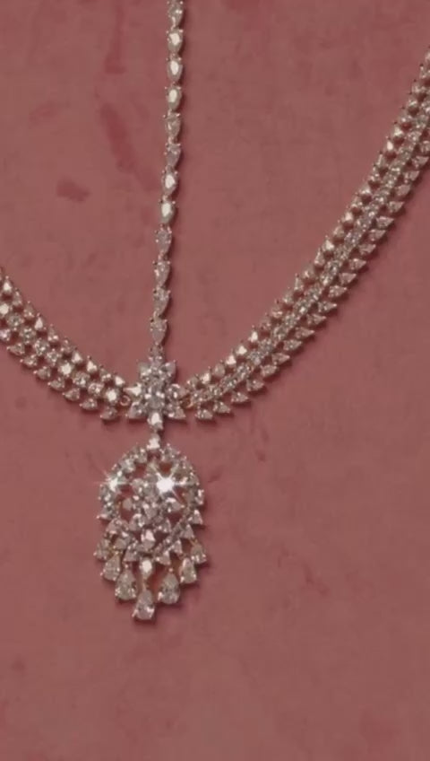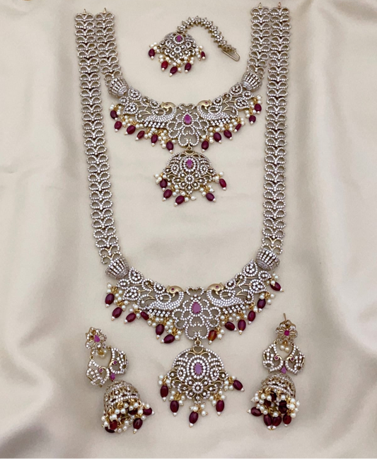 Elegant Premium CZ Stone Bridal Set With Earrings And Tikka