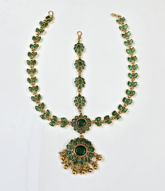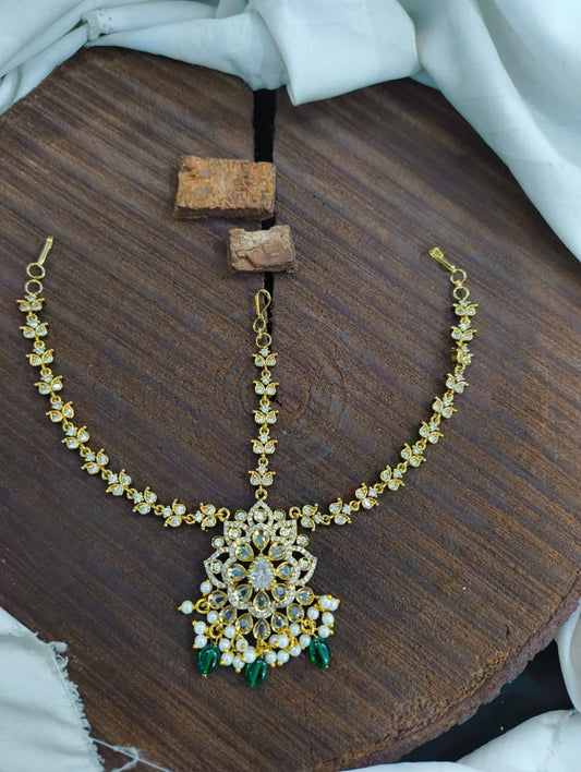 Beautiful Premium Bridal Mathpati Real Kemp Stone Tikkas