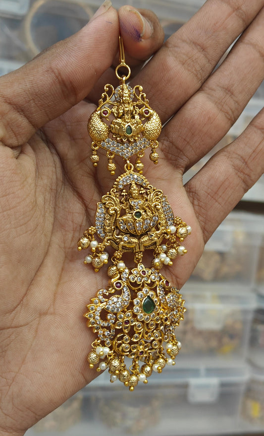 Premium Bridal Matte Traditional Mathpati - Lakshmi Motif Temple Jewelry Tikkas