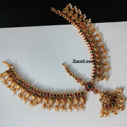 Premium Bridal Matte Finish Traditional Mathpati Tikkas- Temple Jewelry