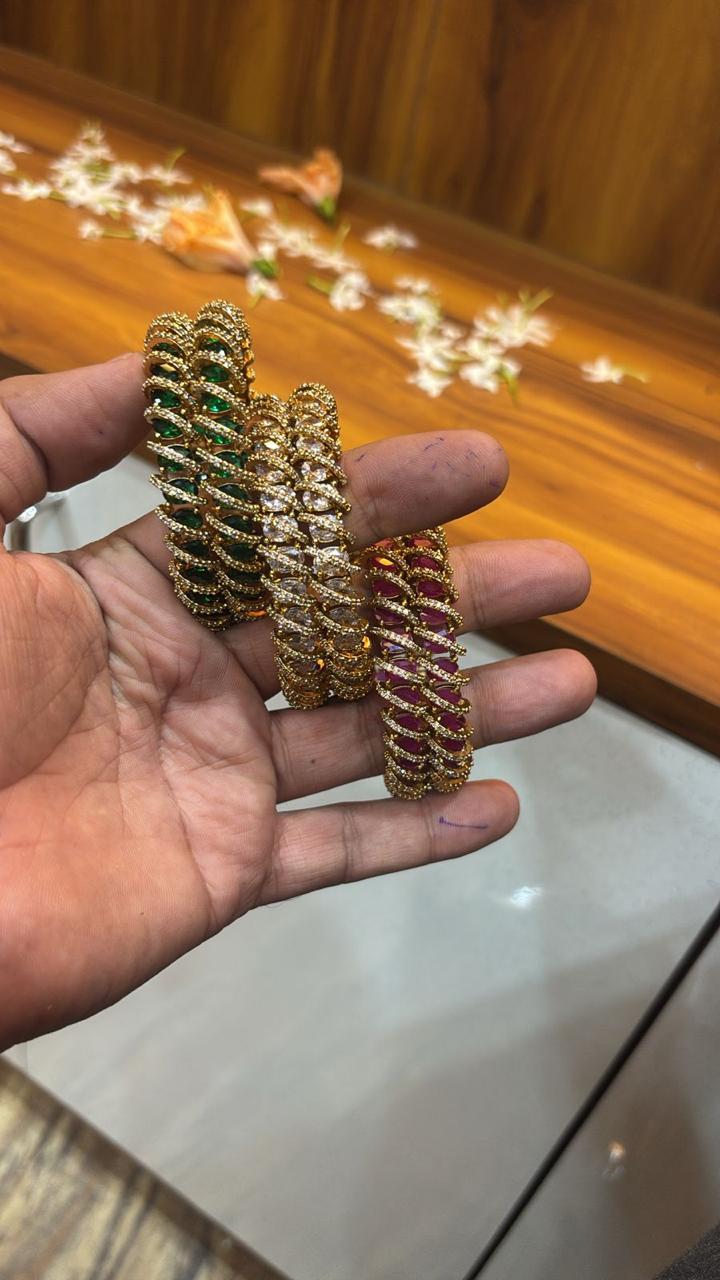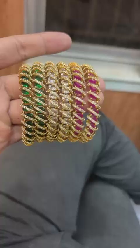 Zig-Zag Designer Premium Matte CZ Stone Bangles - Set Of 2
