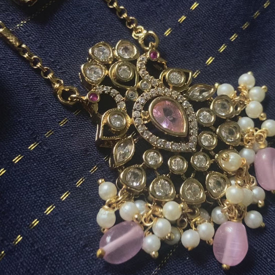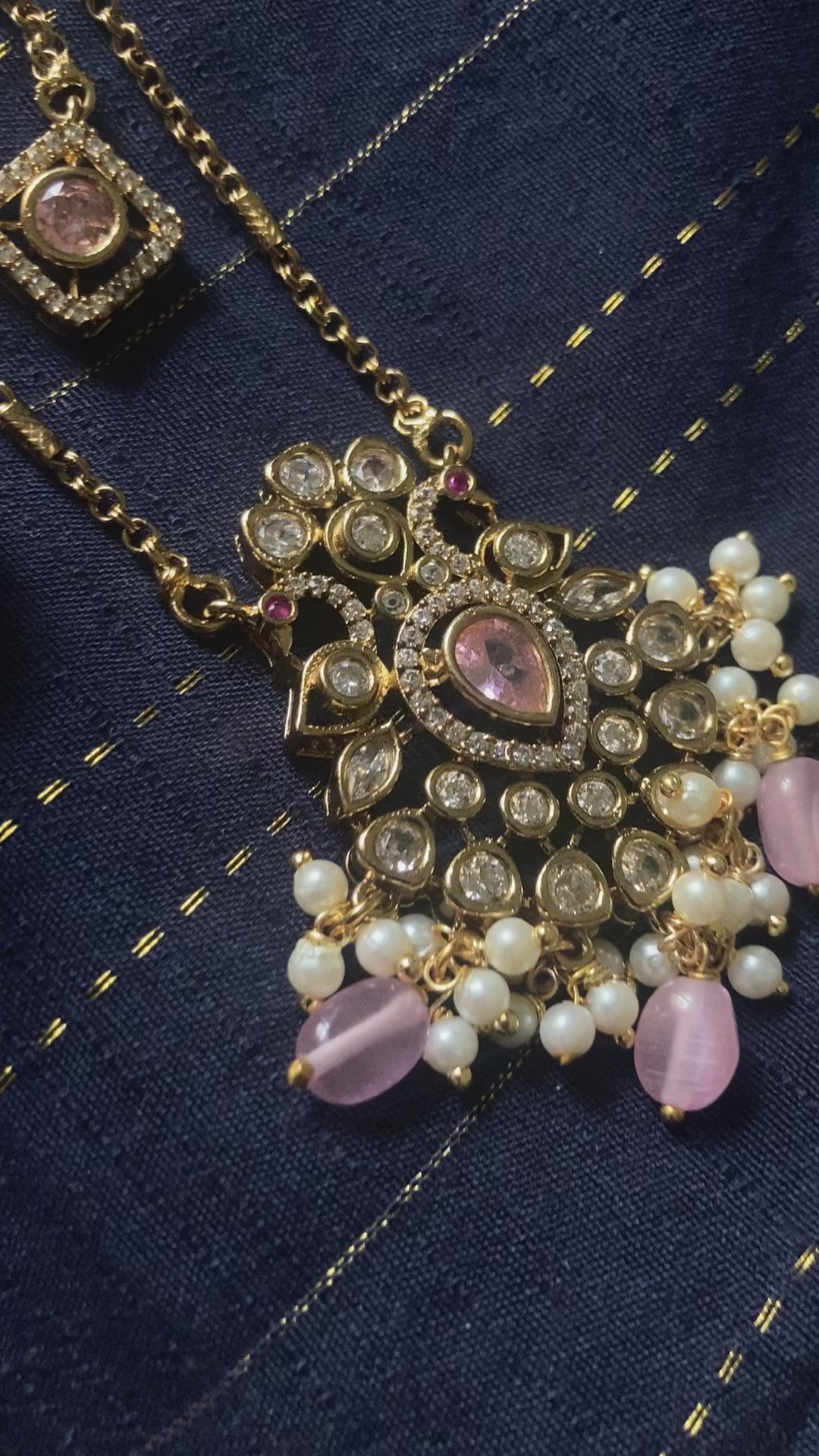 Premium Victorian Two Layered Necklace Set With Studs- Pink