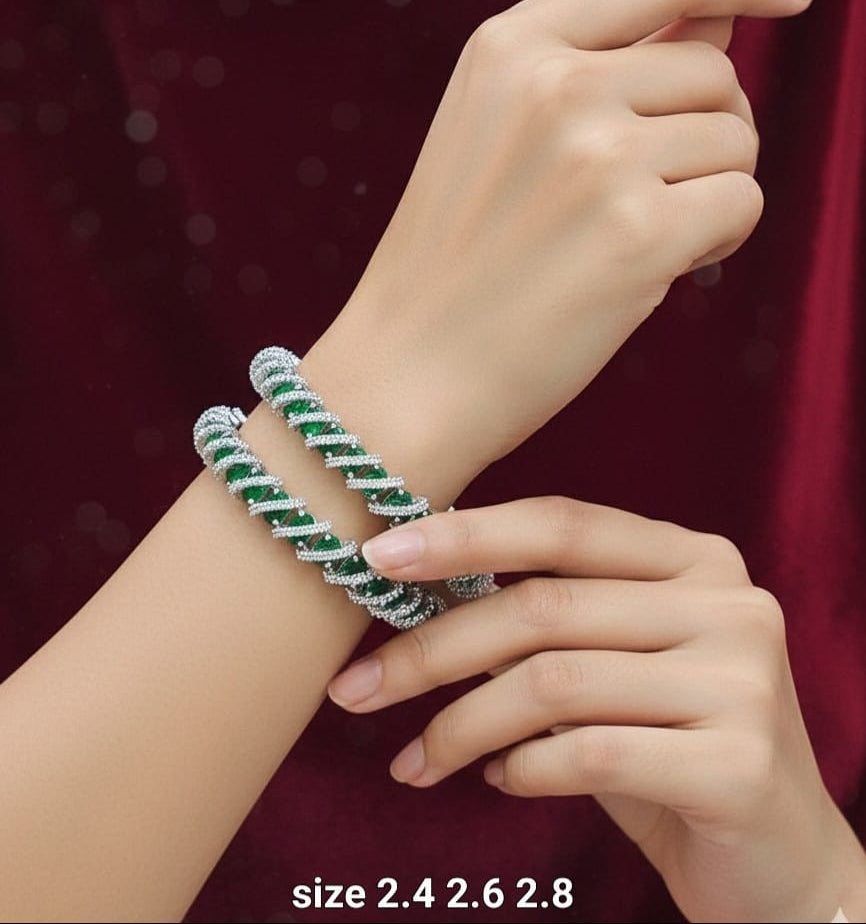 Beautiful Silver Finish American Diamond Stone Bangles -Set Of 2