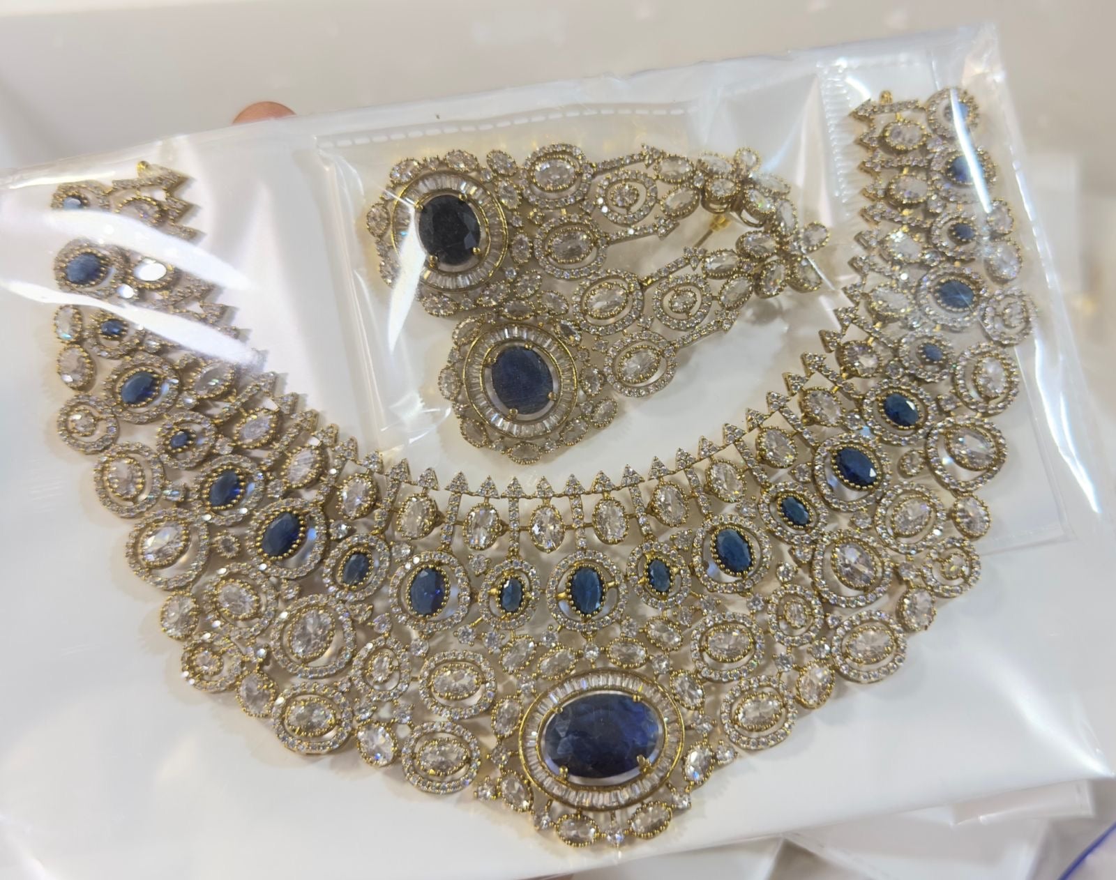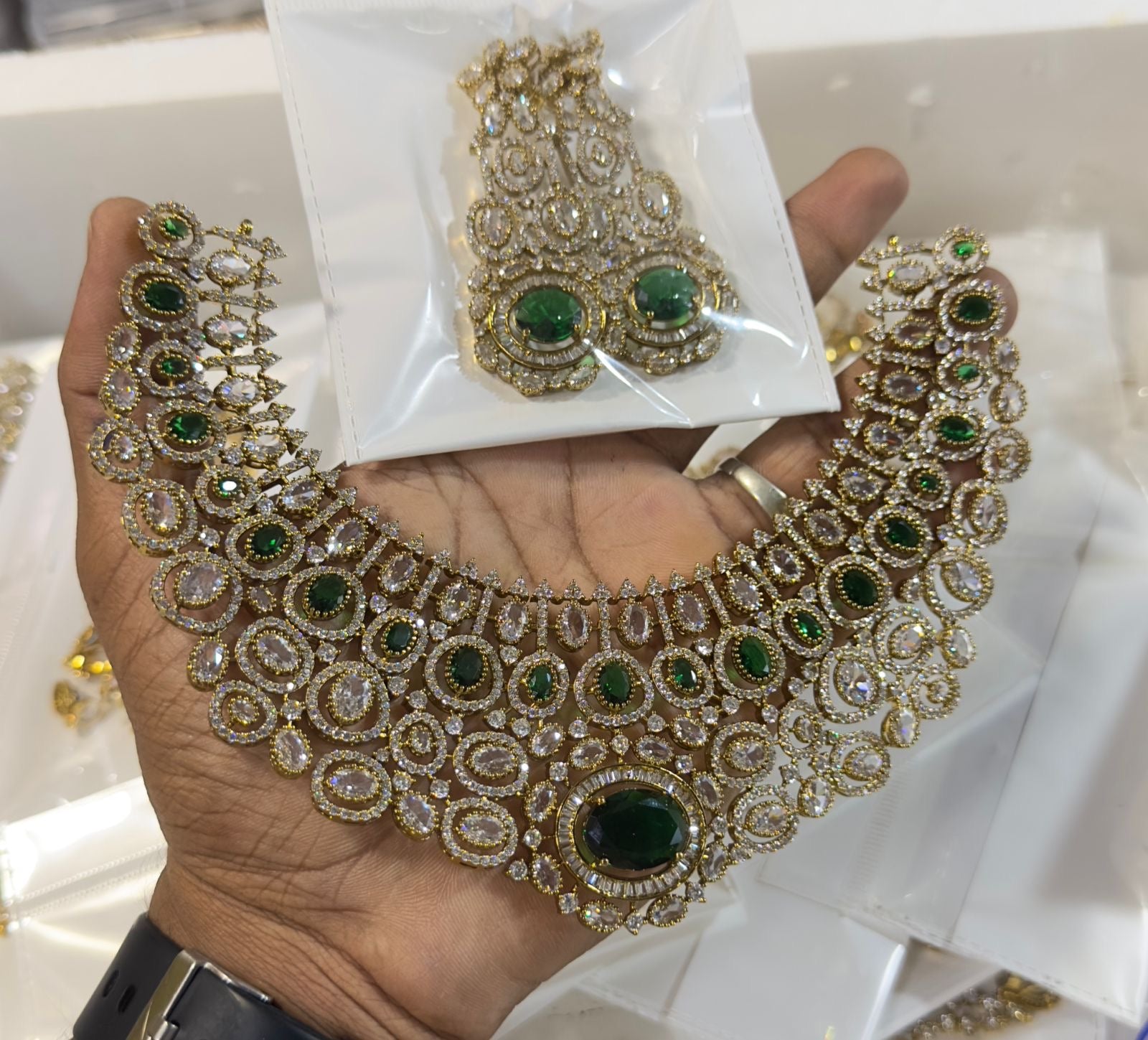 Elegant Bridal Victorian finish Cz Stone Necklace with Earrings- 1 Set