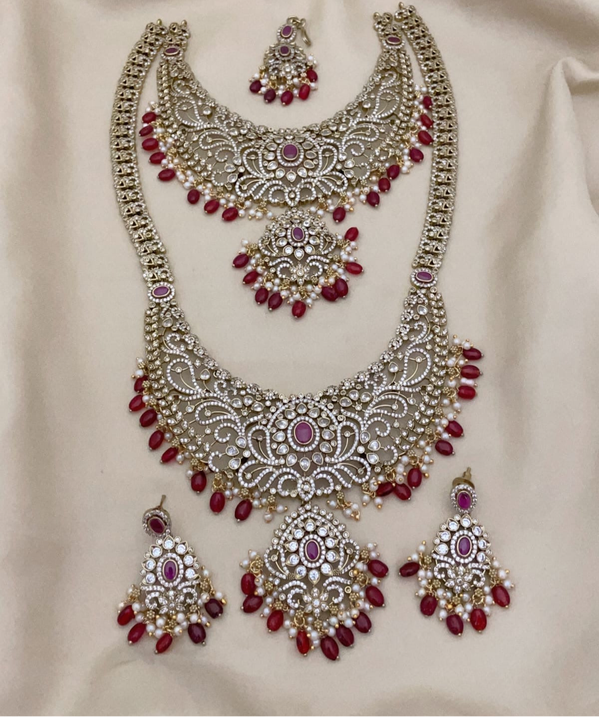 Elegant Premium CZ Stone Bridal Set With Earrings And Tikka