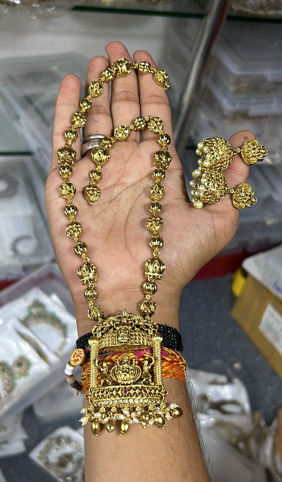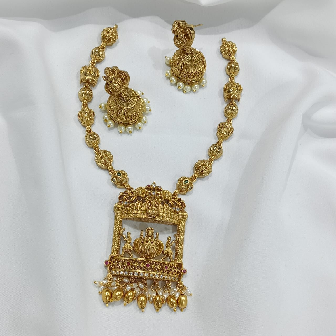 Latest Design Temple jewellery Matte Haram Necklace with Earrings
